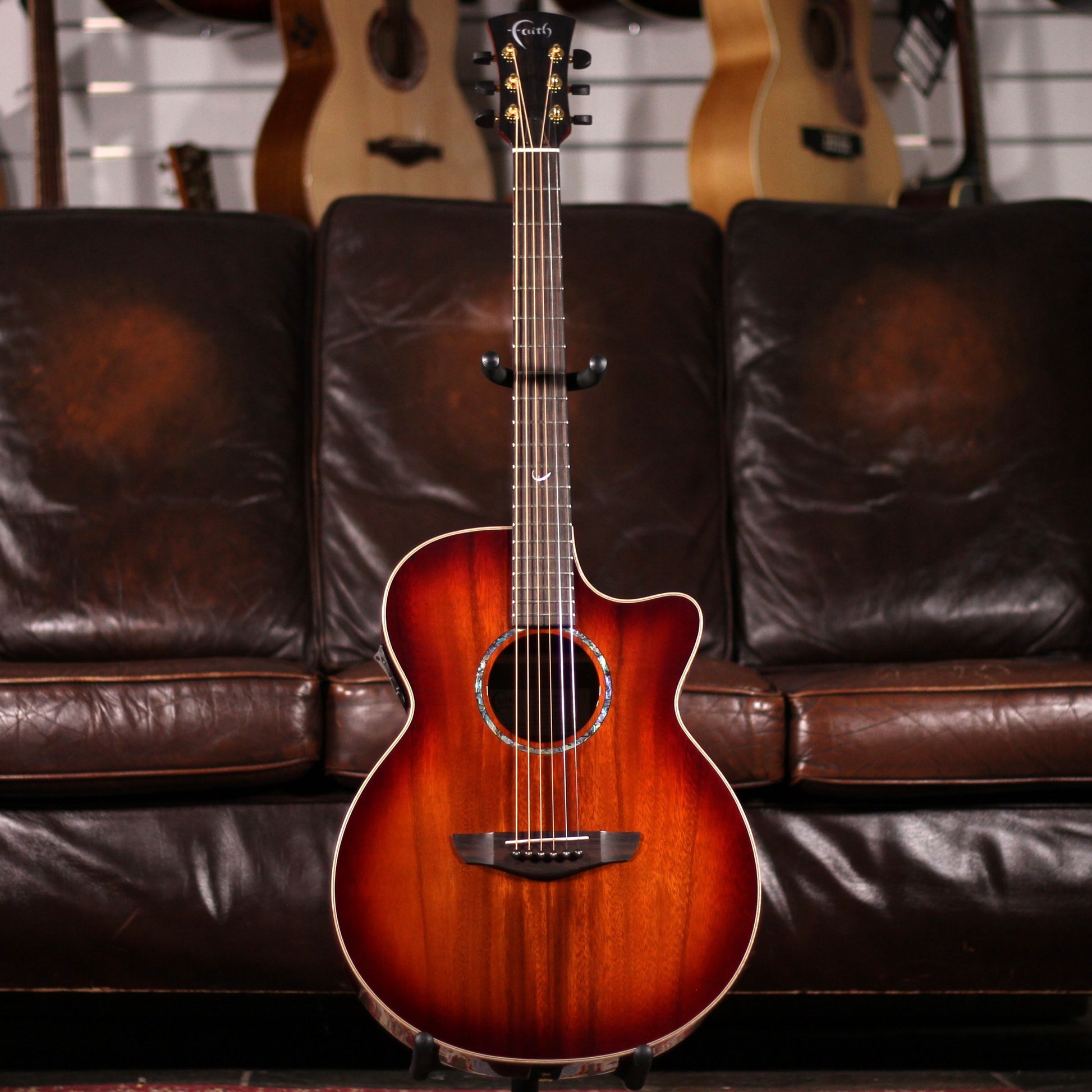 The first of the Faith body shapes launched in the winter of 2002, the Venus has become a guitar industry reference point around the world as a style that strikes the ideal balance of size and sound. Thanks to its 15" lower bout and shallower body, the Venus is comfortable to play for long periods yet doesn’t sacrifice tone or acoustic power.